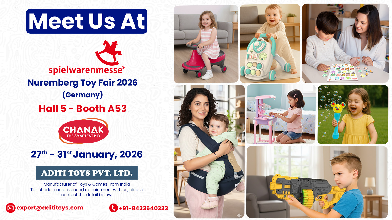 Our journey through the world of toys extends beyond manufacturing, as we actively participate in prominent global events that celebrate creativity, innovation, and the joy of play. From showcasing our latest collections at international toy fairs to connecting with industry leaders and enthusiasts, these events provide an invaluable platform to highlight our brand’s excellence. Stay updated on the prestigious events we’ve attended and the exciting ones we’re gearing up for, as we continue to make our mark in the global toy industry.